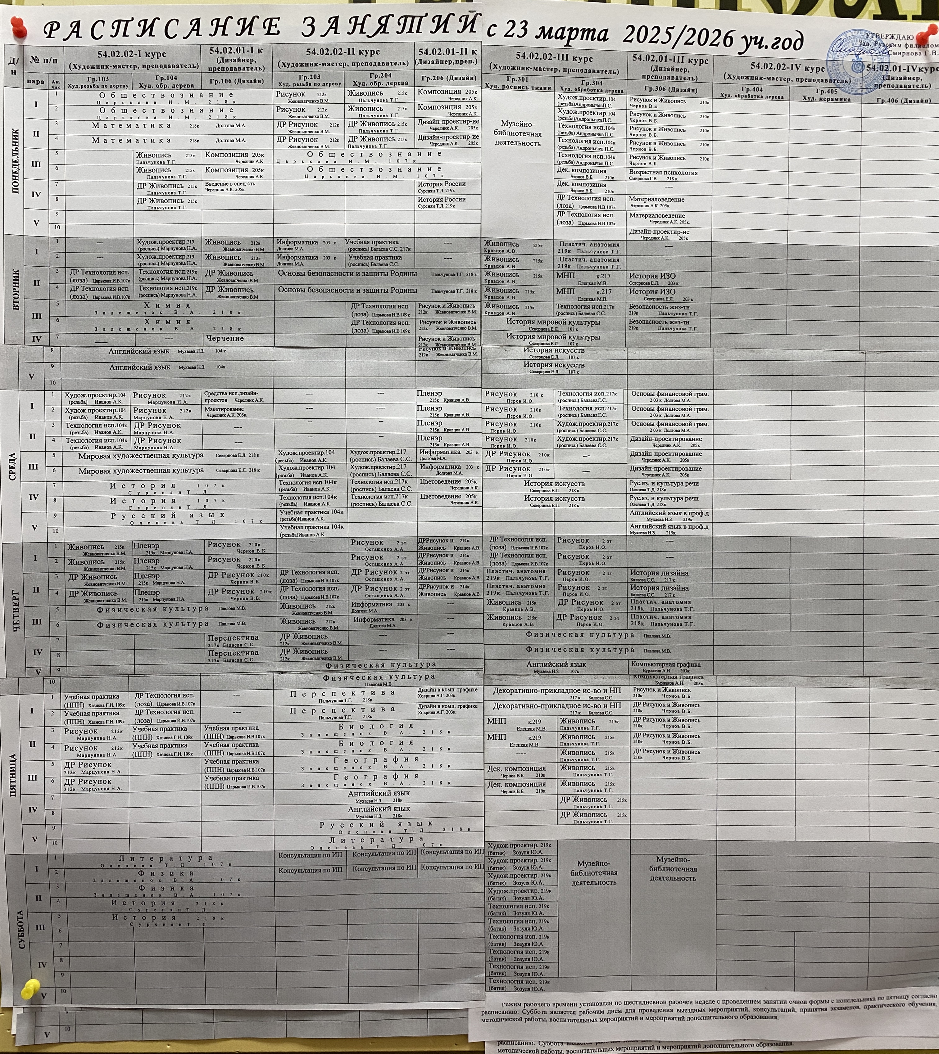 РАСПИСАНИЕ ЗАНЯТИЙ 2 ПОЛУГОДИЕ 2025-2026 УЧ.Г